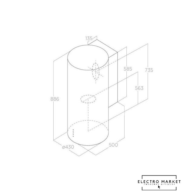 монтаж островной, ширина 35 см, управление электронное, производительность мотора 800 м³/ч