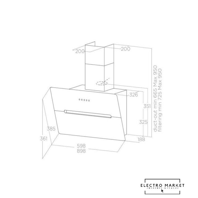 конструкция Т-образная, монтаж островной, ширина 89.7 см, управление электронное/кнопочное, производительность мотора 850 м³/ч, цвет нержавеющая сталь