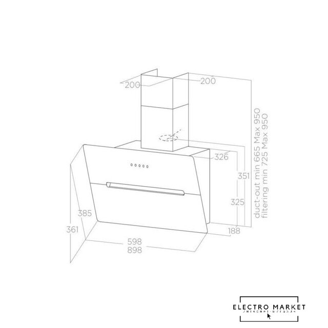 конструкция скрытая, монтаж для встраивания, ширина 71.4 см, управление электронное/кнопочное, производительность вытяжки 600 м³/ч, производительность мотора 1300 м³/ч, цвет черный