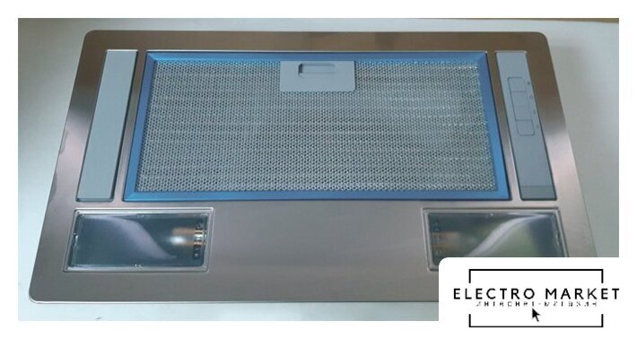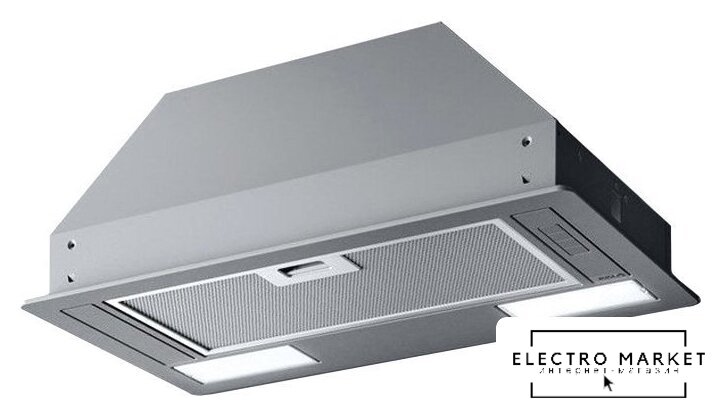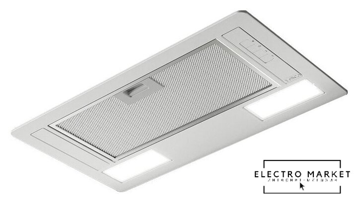 конструкция скрытая, монтаж для встраивания, ширина 52 см, управление электронное/кнопочное, производительность мотора 650 м³/ч, цвет нержавеющая сталь