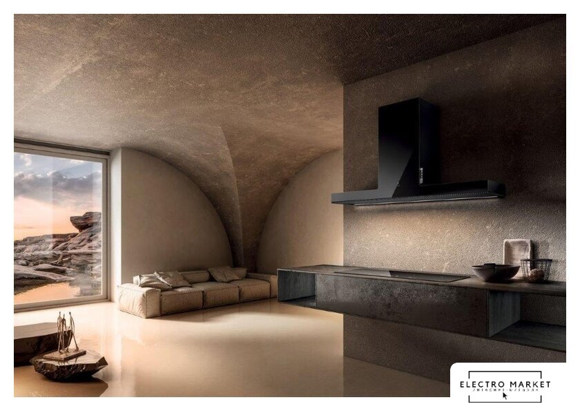конструкция наклонная, монтаж настенный, управление электронное/кнопочное, производительность вытяжки 649 м³/ч, ширина 75 см