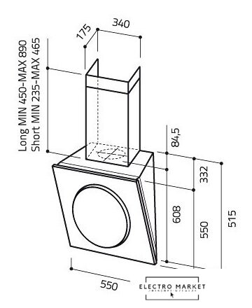 монтаж настенный, управление электронное, производительность мотора 800 м³/ч, ширина 80.6 см