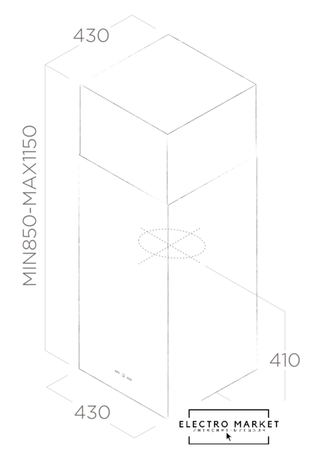 конструкция коробчатая, монтаж островной, управление электронное/кнопочное, производительность мотора 650 м³/ч, ширина 43 см