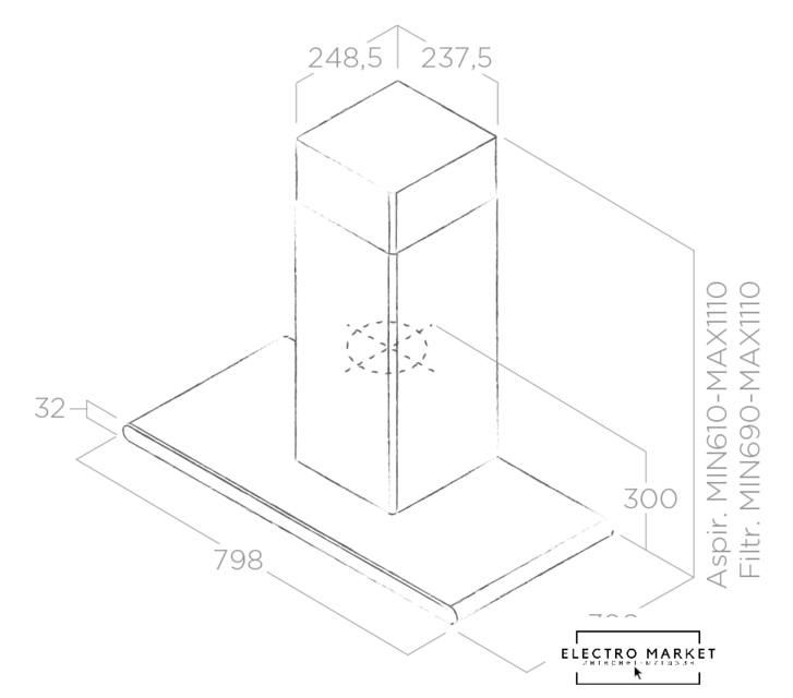 конструкция коробчатая, монтаж настенный, ширина 35 см, управление электронное/кнопочное, производительность мотора 750 м³/ч, цвет черный