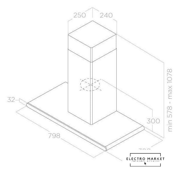 конструкция наклонная, монтаж настенный, ширина 79.8 см, управление сенсорное, производительность вытяжки 495 м³/ч, цвет черный