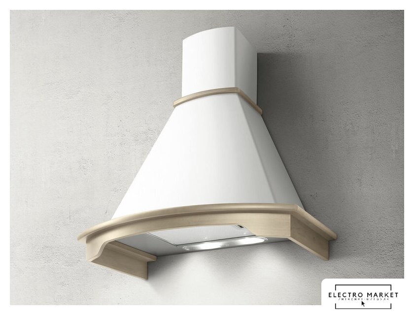конструкция наклонная, монтаж настенный, ширина 59 см, управление сенсорное, производительность вытяжки 431 м³/ч, цвет белый
