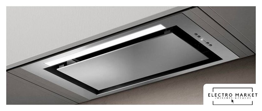 конструкция скрытая, монтаж для встраивания, ширина 53.2 см, управление электронное/кнопочное, производительность вытяжки 591 м³/ч, цвет нержавеющая сталь/черный
