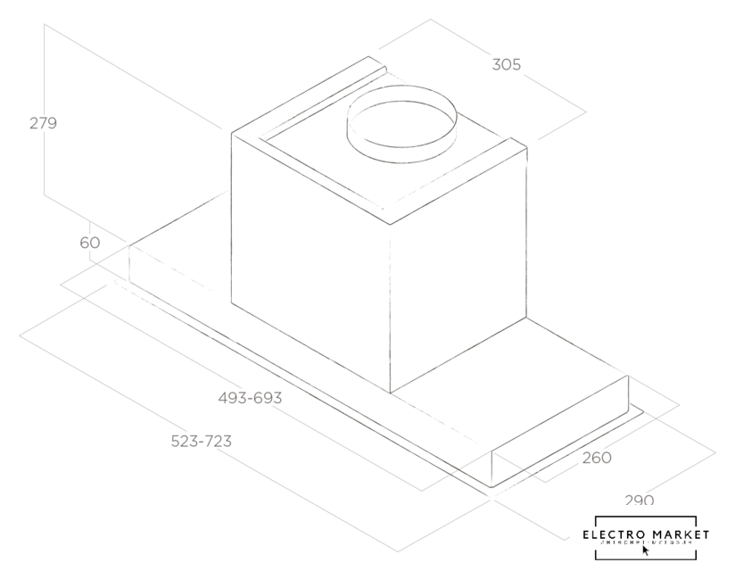 конструкция коробчатая, монтаж настенный, управление электронное/кнопочное, производительность мотора 900 м³/ч, ширина 33.2 см