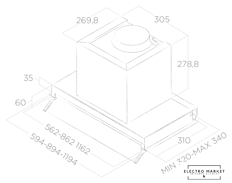 конструкция наклонная, монтаж настенный, управление сенсорное, производительность мотора 1200 м³/ч, ширина 59.8 см