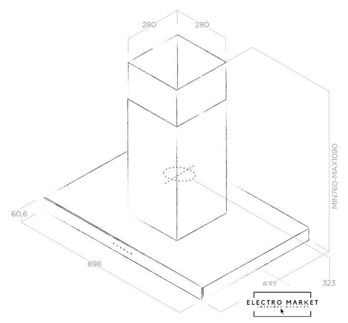 конструкция наклонная, монтаж настенный, ширина 89.8 см, управление сенсорное, производительность вытяжки 560 м³/ч, цвет черный