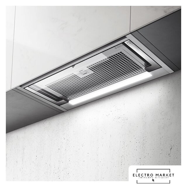 конструкция скрытая, монтаж для встраивания, ширина 72.2 см, управление сенсорное, производительность мотора 800 м³/ч, цвет белый