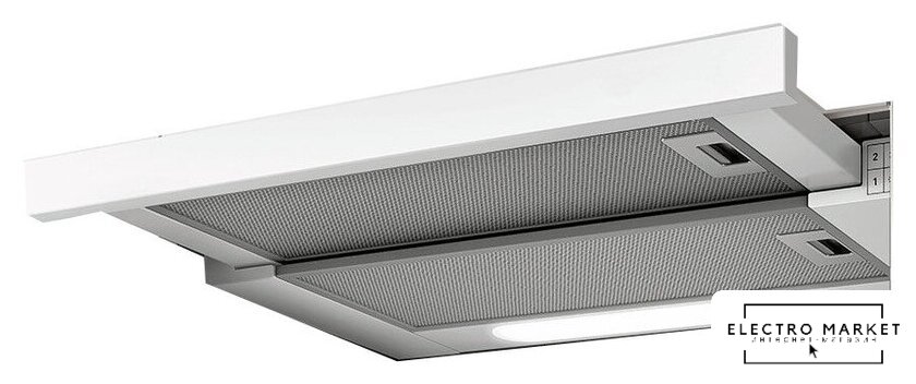 конструкция скрытая, монтаж для встраивания, ширина 70 см, управление механическое, производительность мотора 650 м³/ч, цвет нержавеющая сталь
