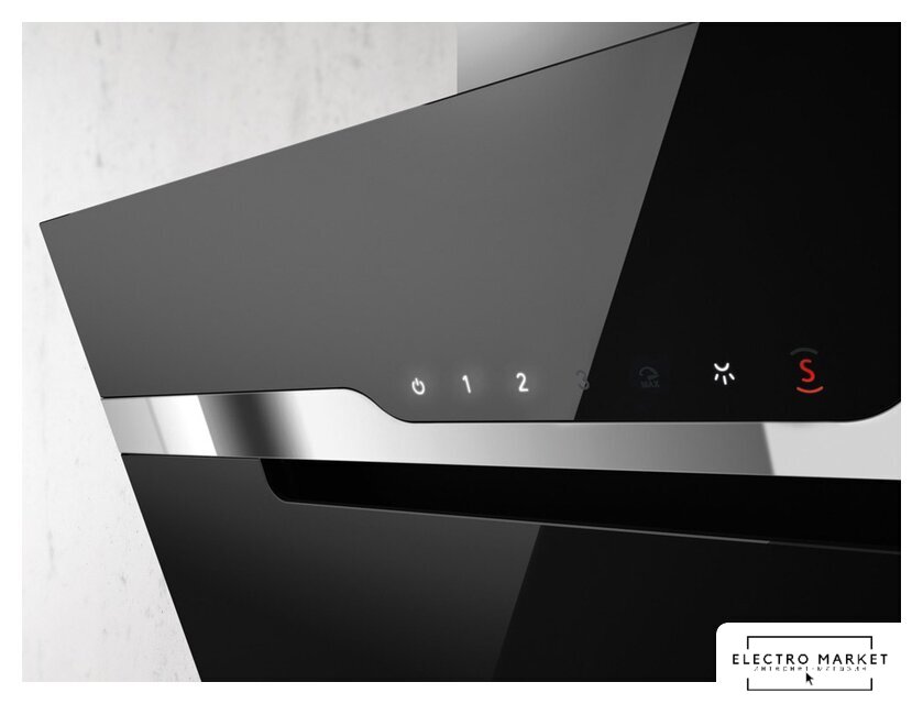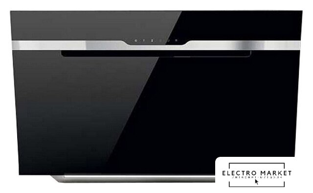 конструкция Т-образная, монтаж настенный, ширина 90 см, управление сенсорное, производительность вытяжки 531 м³/ч, цвет черный