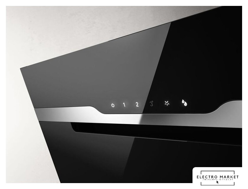 конструкция Т-образная, монтаж настенный, ширина 60 см, управление сенсорное, производительность вытяжки 531 м³/ч, цвет черный