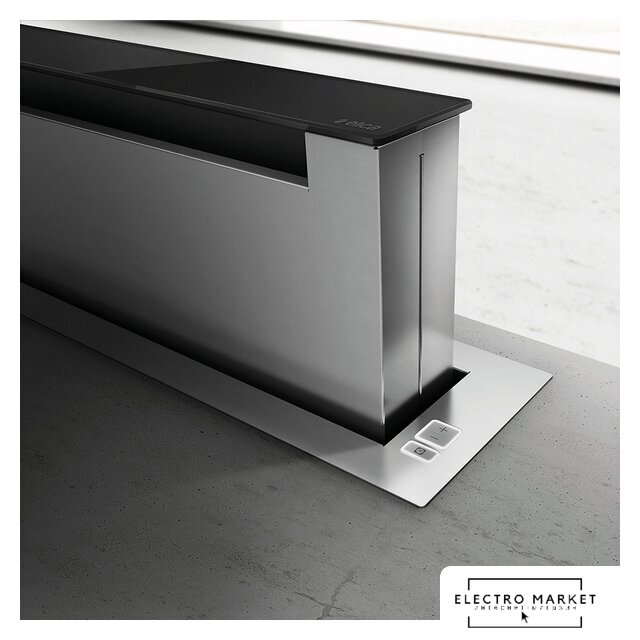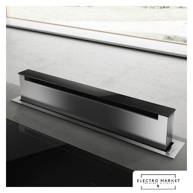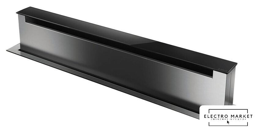 конструкция скрытая, монтаж для встраивания в столешницу, ширина 88 см, управление сенсорное, производительность вытяжки 470 м³/ч, цвет черный