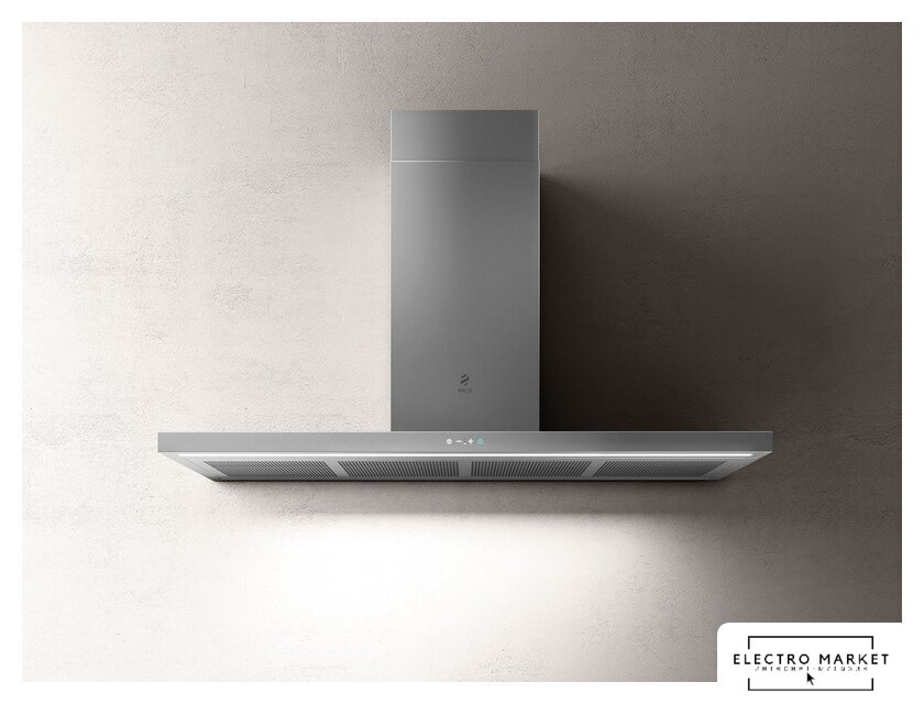 конструкция скрытая, монтаж для встраивания, ширина 113 см, управление электронное/кнопочное, производительность вытяжки 600 м³/ч, цвет нержавеющая сталь