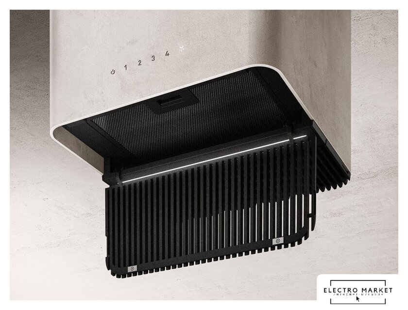 конструкция наклонная, монтаж настенный, ширина 89.5 см, управление сенсорное, производительность вытяжки 636 м³/ч, цвет серый
