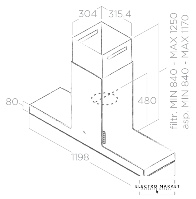 конструкция коробчатая, монтаж островной, ширина 50 см, управление электронное/кнопочное, производительность вытяжки 336 м³/ч, производительность мотора 800 м³/ч, цвет серый/черный