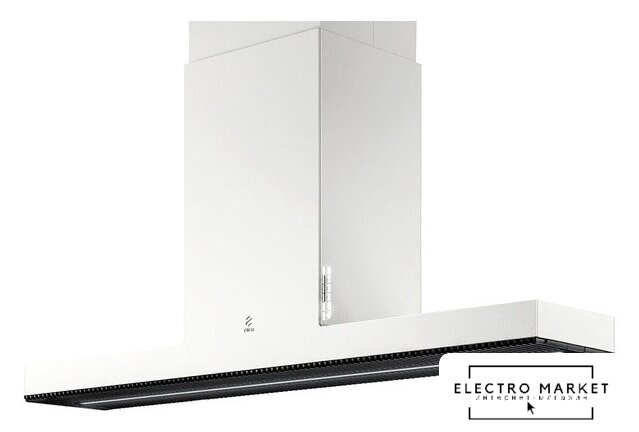 конструкция коробчатая, монтаж островной, ширина 54 см, управление электронное/поворотный переключатель, производительность мотора 600 м³/ч, цвет белый