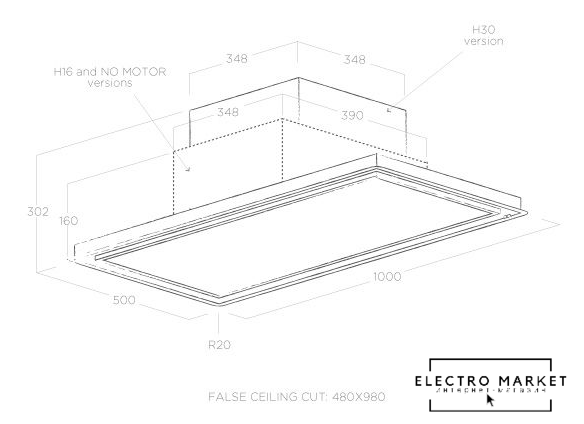 конструкция скрытая, монтаж островной/для встраивания, ширина 100 см, управление электронное, производительность вытяжки 570 м³/ч, производительность мотора 1200 м³/ч, цвет нержавеющая сталь