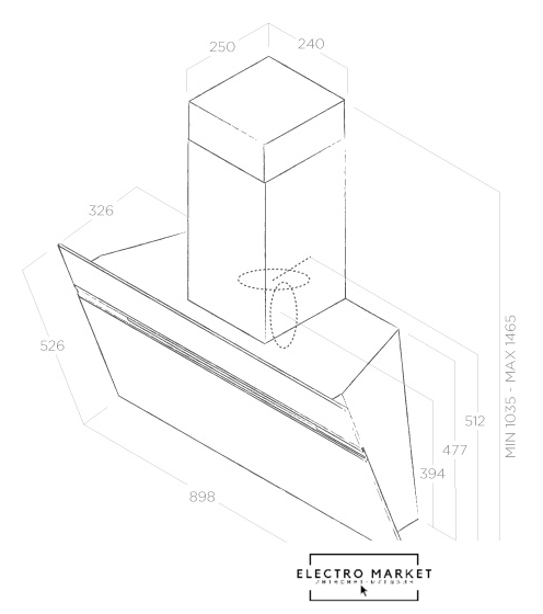 конструкция коробчатая, монтаж настенный, ширина 35 см, управление электронное/кнопочное, производительность мотора 750 м³/ч, цвет белый