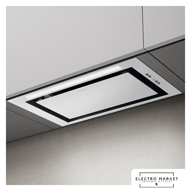 конструкция скрытая, монтаж для встраивания, ширина 51.8 см, управление сенсорное, производительность мотора 950 м³/ч, цвет белый