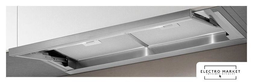 конструкция скрытая, монтаж для встраивания, ширина 71.4 см, управление электронное/кнопочное, производительность вытяжки 580 м³/ч, цвет нержавеющая сталь