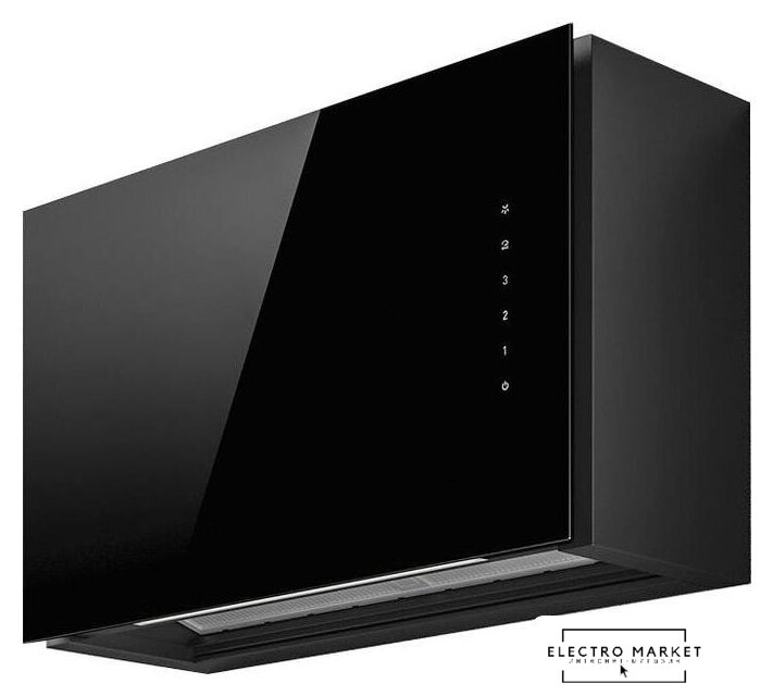 конструкция Т-образная, монтаж островной, ширина 90 см, управление сенсорное, производительность мотора 445 м³/ч, цвет нержавеющая сталь