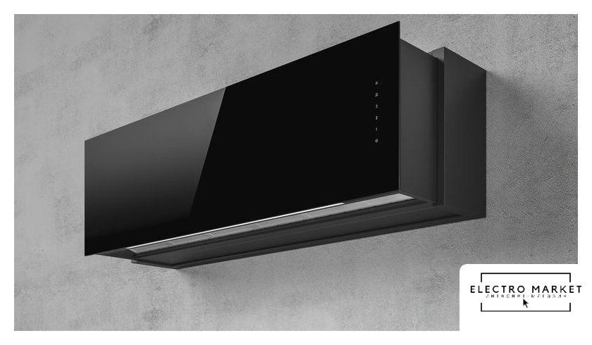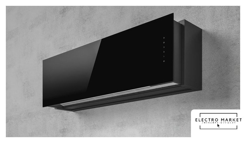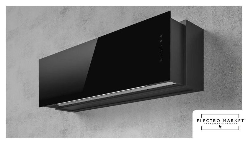 конструкция купольная, монтаж настенный, управление поворотный переключатель, производительность мотора 820 м³/ч, ширина 90 см