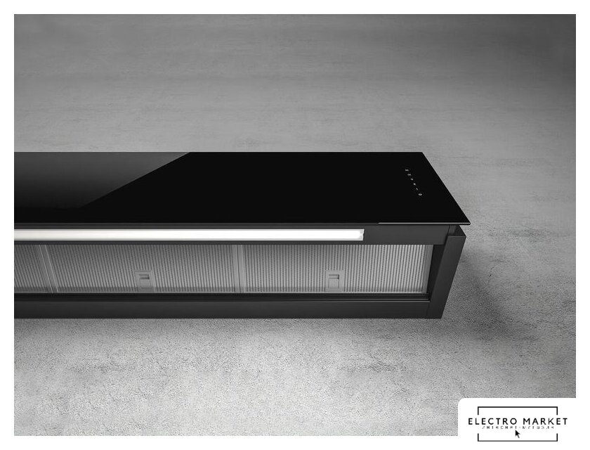 конструкция коробчатая, монтаж островной, ширина 39 см, управление электронное/кнопочное, производительность вытяжки 537 м³/ч, цвет черный