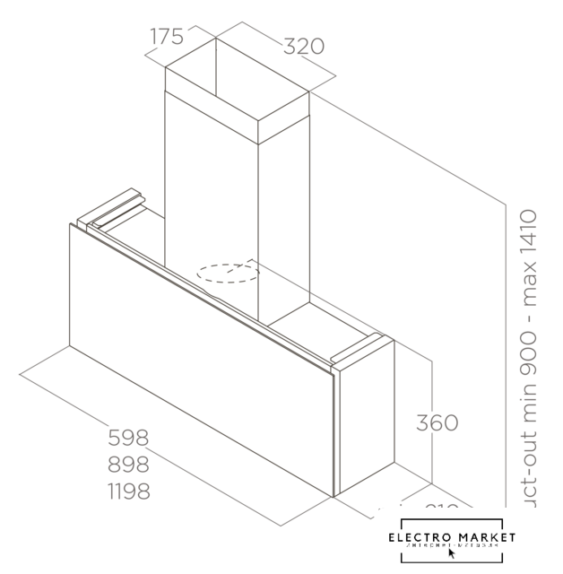 конструкция купольная, монтаж настенный, управление механическое/поворотный переключатель, производительность вытяжки 630 м³/ч, ширина 89.6 см