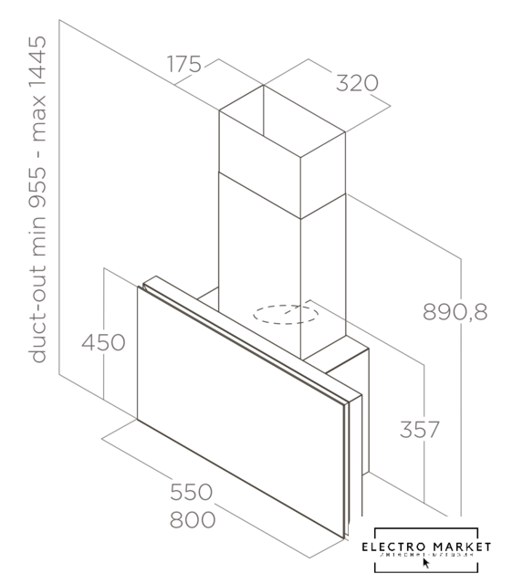 конструкция скрытая, монтаж для встраивания, ширина 79.1 см, управление механическое/кнопочное, производительность мотора 950 м³/ч, цвет нержавеющая сталь
