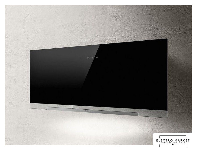 конструкция наклонная, монтаж настенный, ширина 89.8 см, управление сенсорное/электронное, производительность вытяжки 575 м³/ч, цвет черный