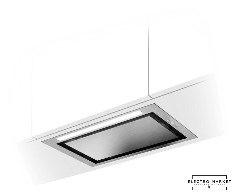 конструкция Т-образная, монтаж настенный, ширина 90 см, управление электронное/кнопочное, производительность вытяжки 480 м³/ч, цвет черный