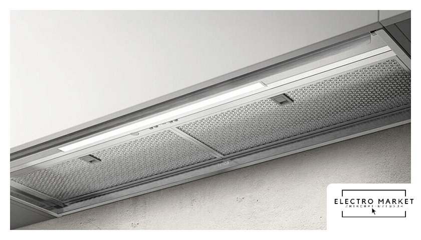конструкция скрытая, монтаж для встраивания, ширина 52.3 см, управление электронное/кнопочное, производительность вытяжки 600 м³/ч, производительность мотора 1300 м³/ч, цвет нержавеющая сталь