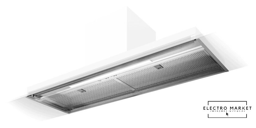 конструкция Т-образная, монтаж островной, ширина 90 см, управление сенсорное, производительность вытяжки 445 м³/ч, цвет нержавеющая сталь