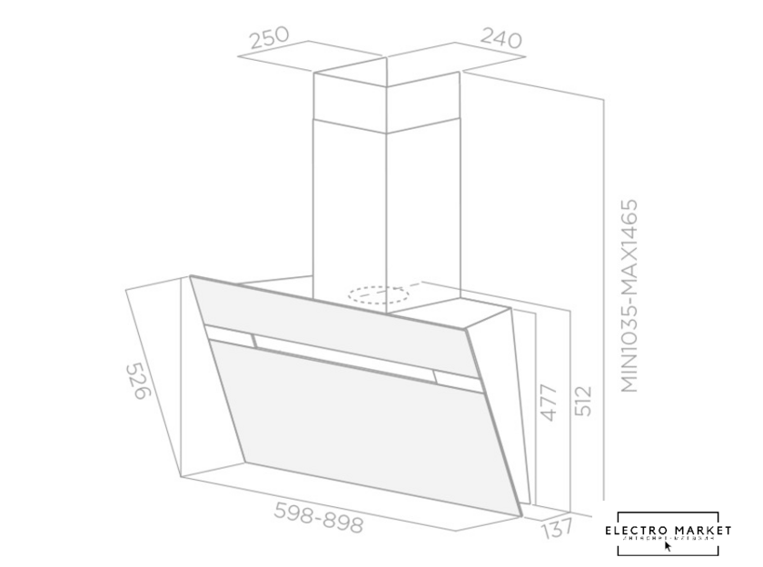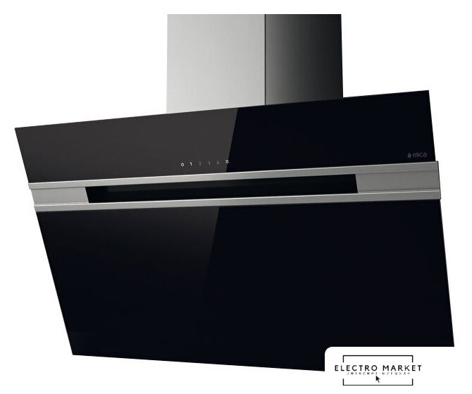 конструкция наклонная, монтаж настенный, ширина 89.8 см, управление сенсорное, производительность вытяжки 603 м³/ч, производительность мотора 1200 м³/ч, цвет черный