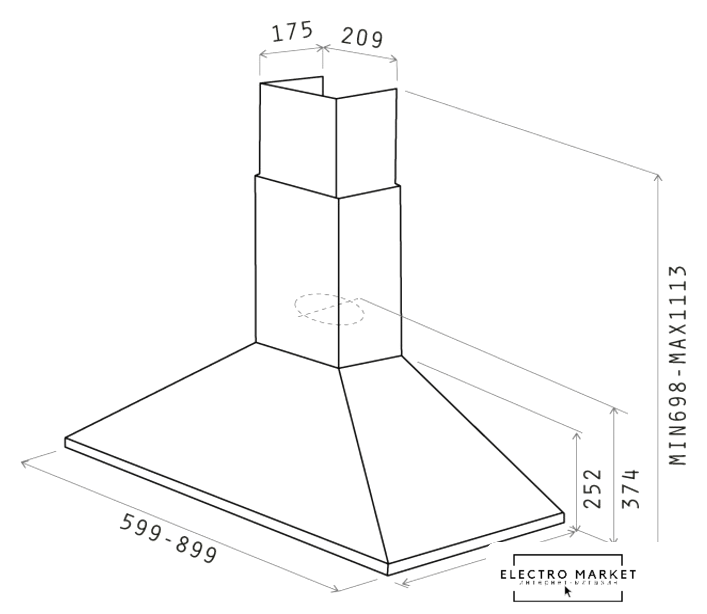 конструкция коробчатая, монтаж островной, ширина 38 см, управление механическое/кнопочное, производительность мотора 1000 м³/ч, цвет белый