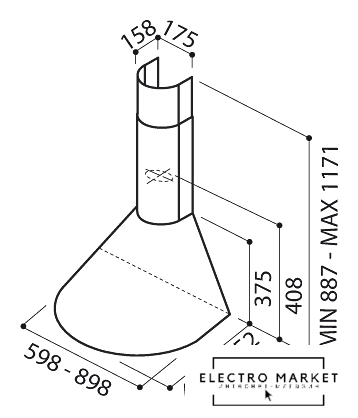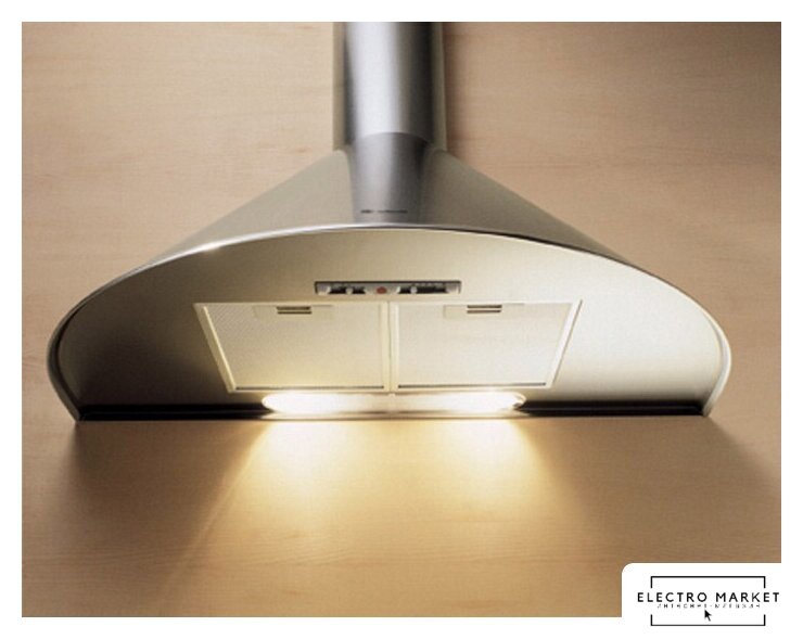 конструкция коробчатая, монтаж настенный, ширина 35 см, управление электронное/кнопочное, производительность вытяжки 350 м³/ч, производительность мотора 900 м³/ч, цвет нержавеющая сталь