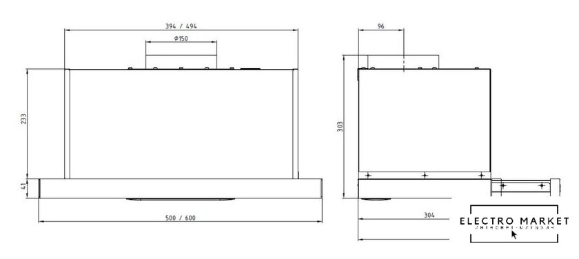 конструкция телескопическая, монтаж для встраивания, ширина 50 см, управление механическое/кнопочное, производительность мотора 1000 м³/ч, цвет белый
