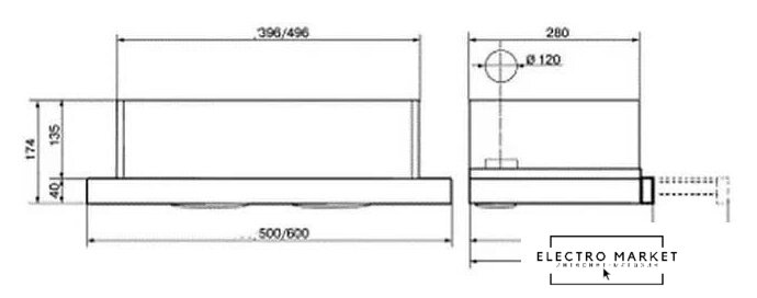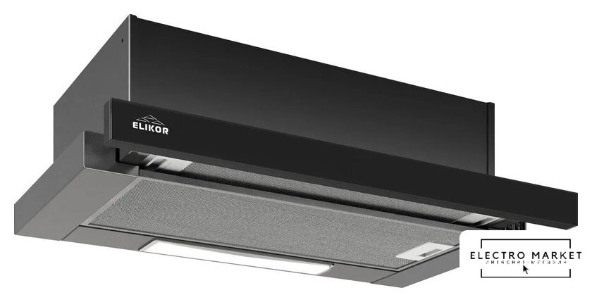 конструкция телескопическая, монтаж для встраивания, ширина 60 см, управление механическое/кнопочное, производительность мотора 1000 м³/ч, цвет белый