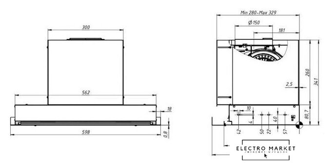 конструкция наклонная, монтаж настенный, управление кнопочное, производительность мотора 700 м³/ч, ширина 59 см