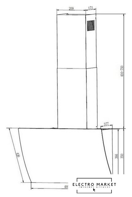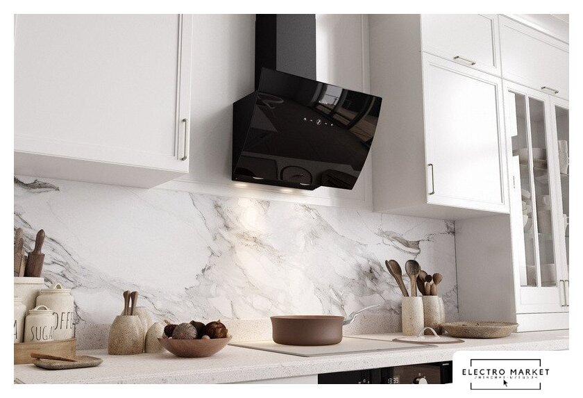 конструкция наклонная, монтаж настенный, ширина 59.5 см, управление сенсорное, производительность мотора 750 м³/ч, цвет черный