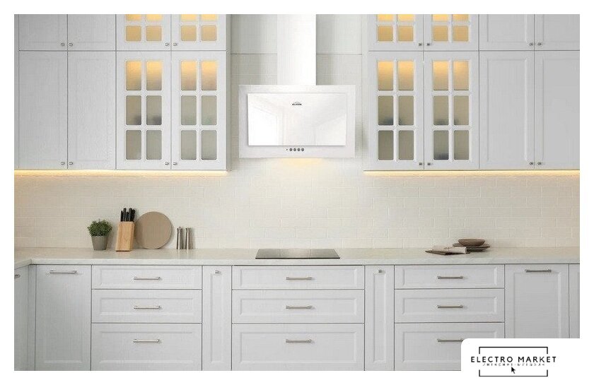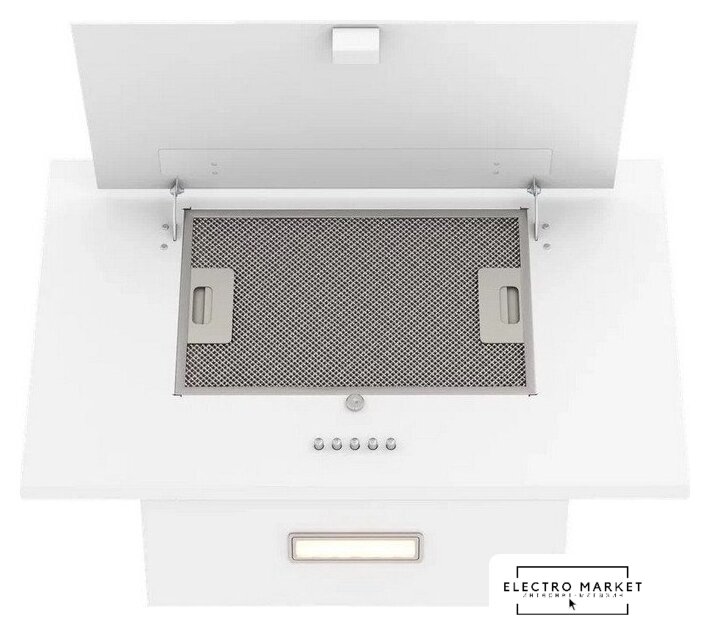 конструкция скрытая, монтаж для встраивания, ширина 52.5 см, управление механическое/кнопочное, производительность мотора 1050 м³/ч, цвет слоновая кость