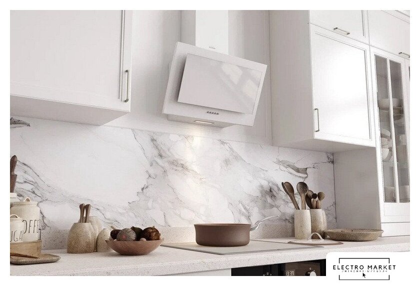 конструкция наклонная, монтаж настенный, ширина 59.7 см, управление сенсорное, производительность мотора 950 м³/ч, цвет черный
