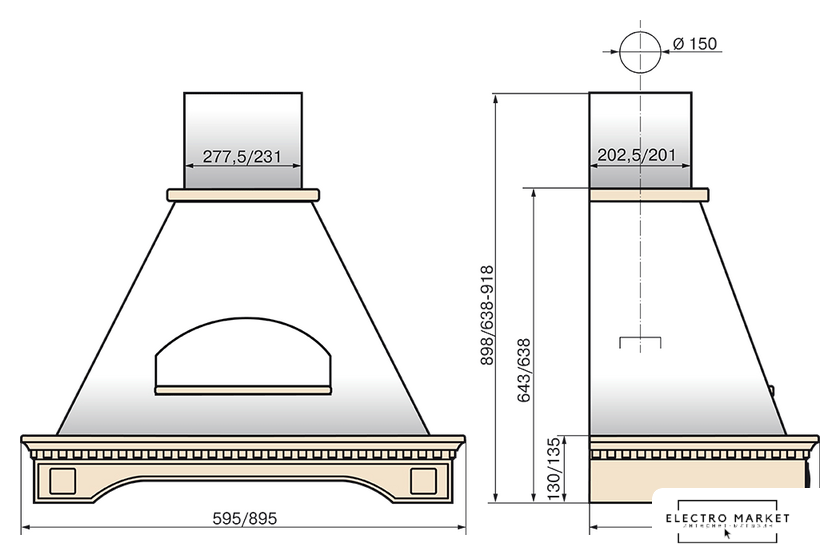 конструкция Т-образная, монтаж настенный, ширина 60 см, управление электронное, производительность мотора 1030 м³/ч, цвет нержавеющая сталь
