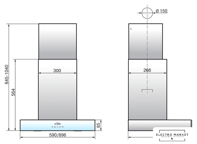 конструкция купольная, монтаж настенный, ширина 59.6 см, управление электронное/кнопочное, производительность мотора 700 м³/ч, цвет нержавеющая сталь
