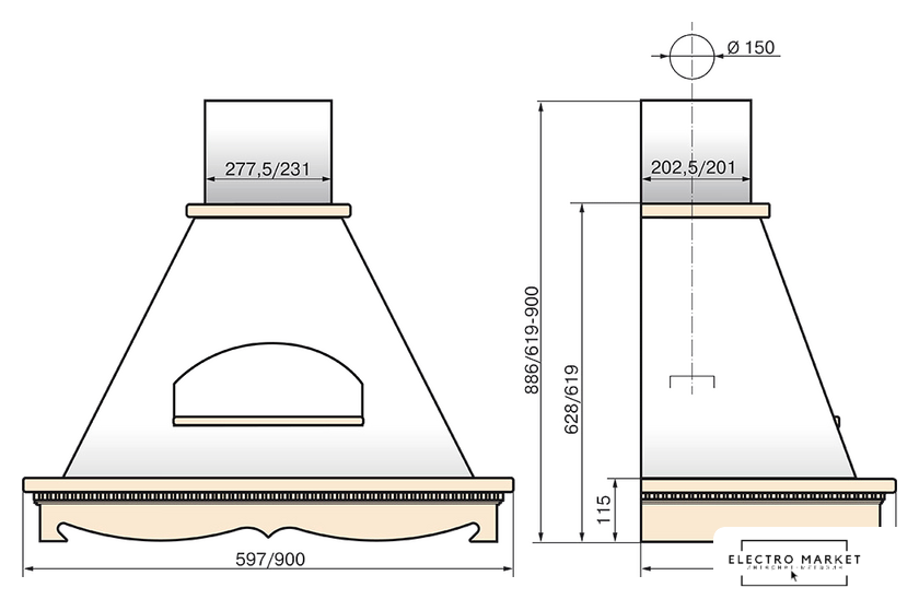конструкция Т-образная, монтаж настенный, ширина 60 см, управление сенсорное, производительность мотора 1000 м³/ч, цвет белый