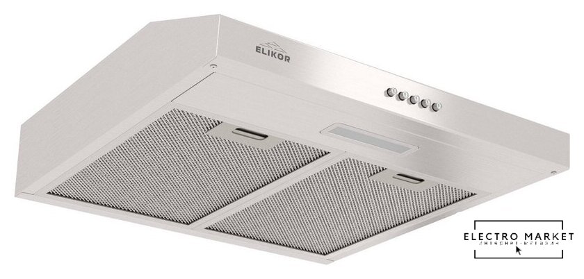 конструкция плоская, монтаж настенный, ширина 59.5 см, управление механическое/кнопочное, производительность мотора 400 м³/ч, цвет нержавеющая сталь