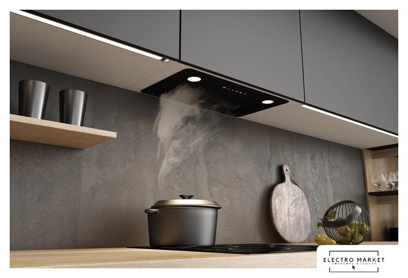 конструкция скрытая, монтаж для встраивания, ширина 60 см, управление сенсорное, производительность мотора 1060 м³/ч, цвет черный